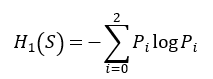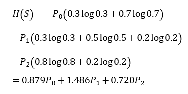 これは無記憶情報源と見たときのエントロピーと同じである。マルコフ情報源は記憶があるから、エントロピーがこれよりも小さくなる。